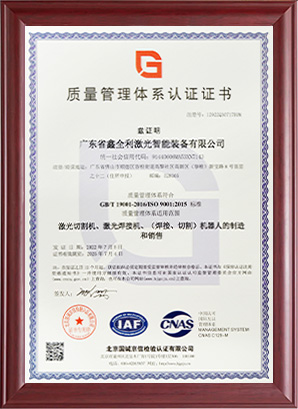 作為行業(yè)當(dāng)先的激光裝備提供商,鑫全利激光具有行業(yè)當(dāng)先自主知識(shí)產(chǎn)權(quán)的產(chǎn)品技術(shù),建立并通過(guò)了ISO9001:2015質(zhì)量管理體系、歐盟CE認(rèn)證,累計(jì)參與制修訂國(guó)家、行業(yè)團(tuán)體標(biāo)準(zhǔn)2項(xiàng),50+項(xiàng)發(fā)明專利和實(shí)用性專利,連續(xù)多年被評(píng)為”重合同守信用”企業(yè)和 “AAA誠(chéng)信企業(yè)”。
