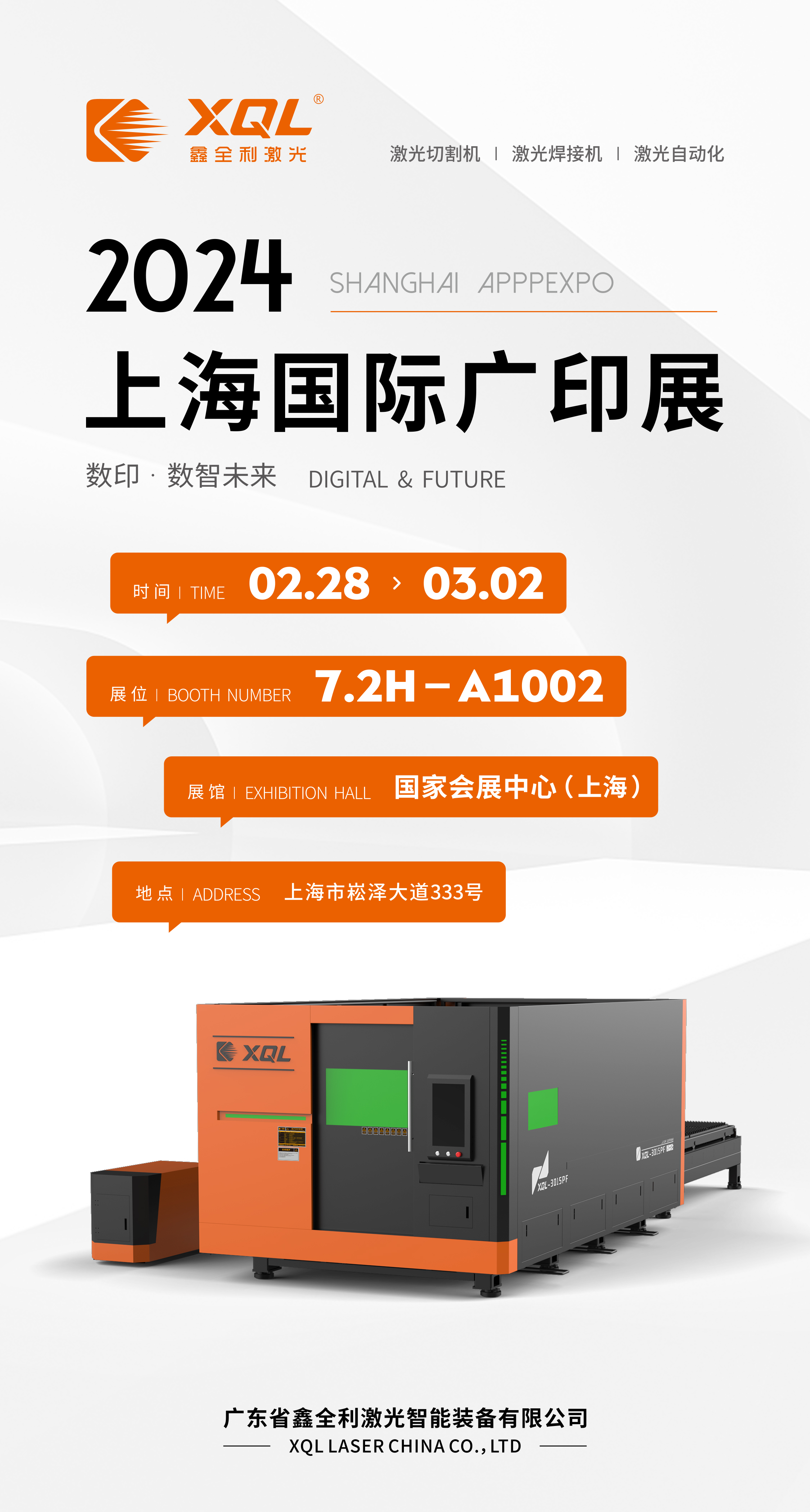 2月28日,2024上海廣印展在國家會展中心(上海)隆重開幕,鑫全利激光(展位號:7.2H—A1002)攜激光切割/焊接產(chǎn)品及解決方案亮相此次展會。