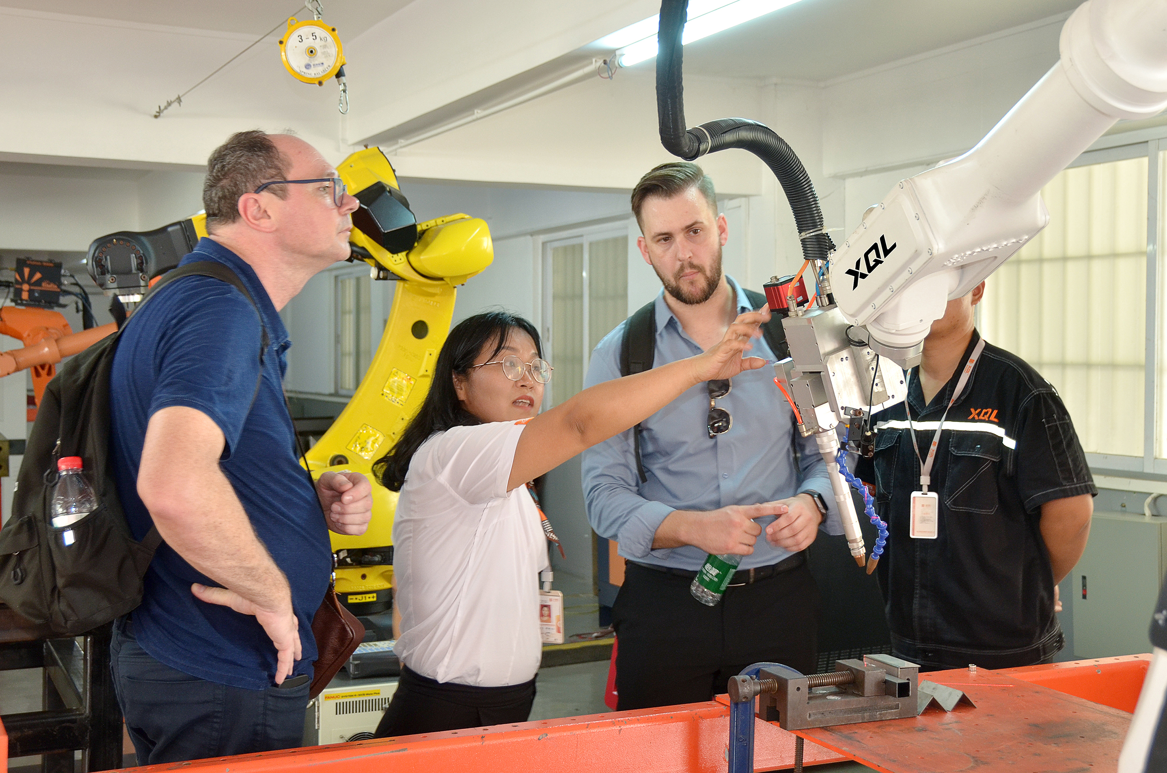 海外采購團一行先后參觀鑫全利的激光切割機、激光焊接機、機器人自動化及樣機展示區(qū),在海外事業(yè)部李總的介紹下,詳細了解了公司發(fā)展規(guī)模情況、產(chǎn)品生產(chǎn)過程、生產(chǎn)工藝及管理等情況,并進行了座談。采購團對鑫全利先進的生產(chǎn)工藝和高質(zhì)量的產(chǎn)品表示高度贊賞,同時也對公司的熱情接待表示感謝。