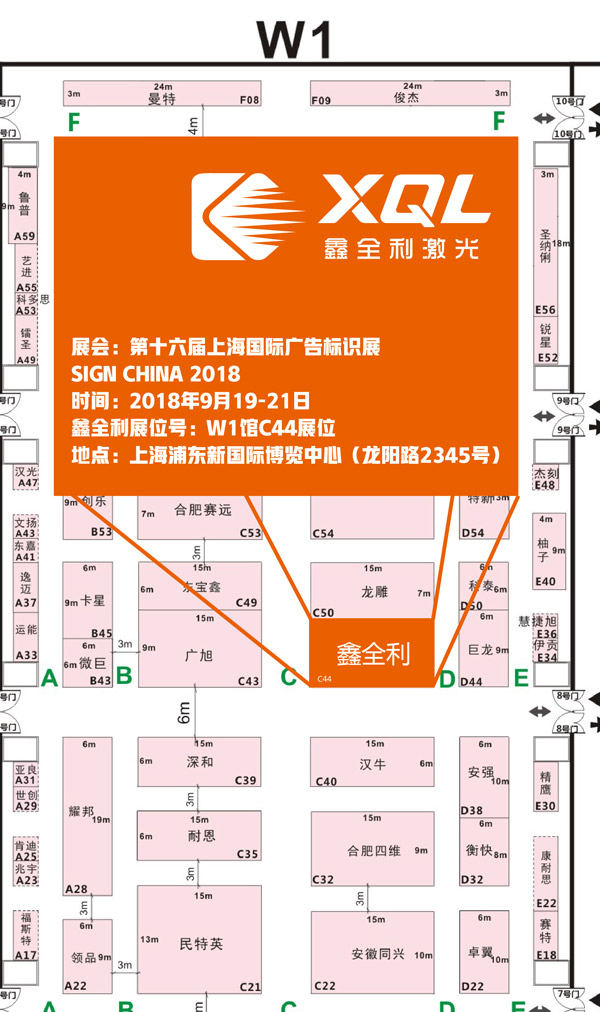 專業(yè)鑄造品牌,實(shí)力引領(lǐng)發(fā)展,2018年9月19-21日,第十六屆上海國際廣告標(biāo)識(shí)展,鑫全利激光誠摯邀請(qǐng)您蒞臨上海浦東新國際博覽中心觀摩、洽談,我們與您在(W1—C44)相約此次盛會(huì)