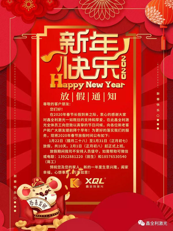 鑫全利激光2020年春節(jié)放假通知