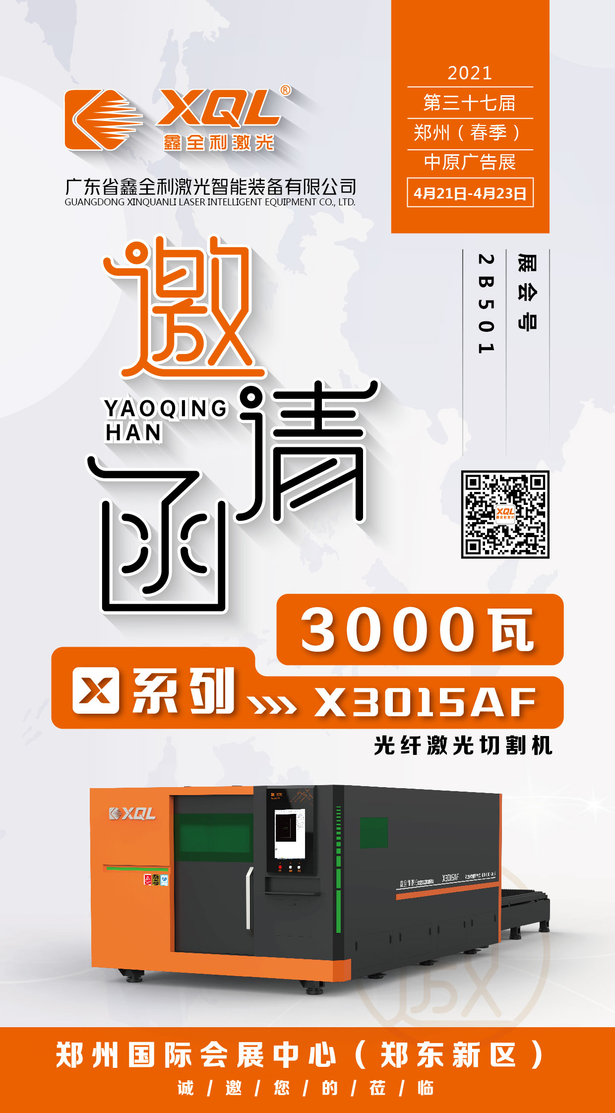 【明日觀展推薦】鑫全利激光邀你2021春季(鄭州)第37屆中原廣告展
