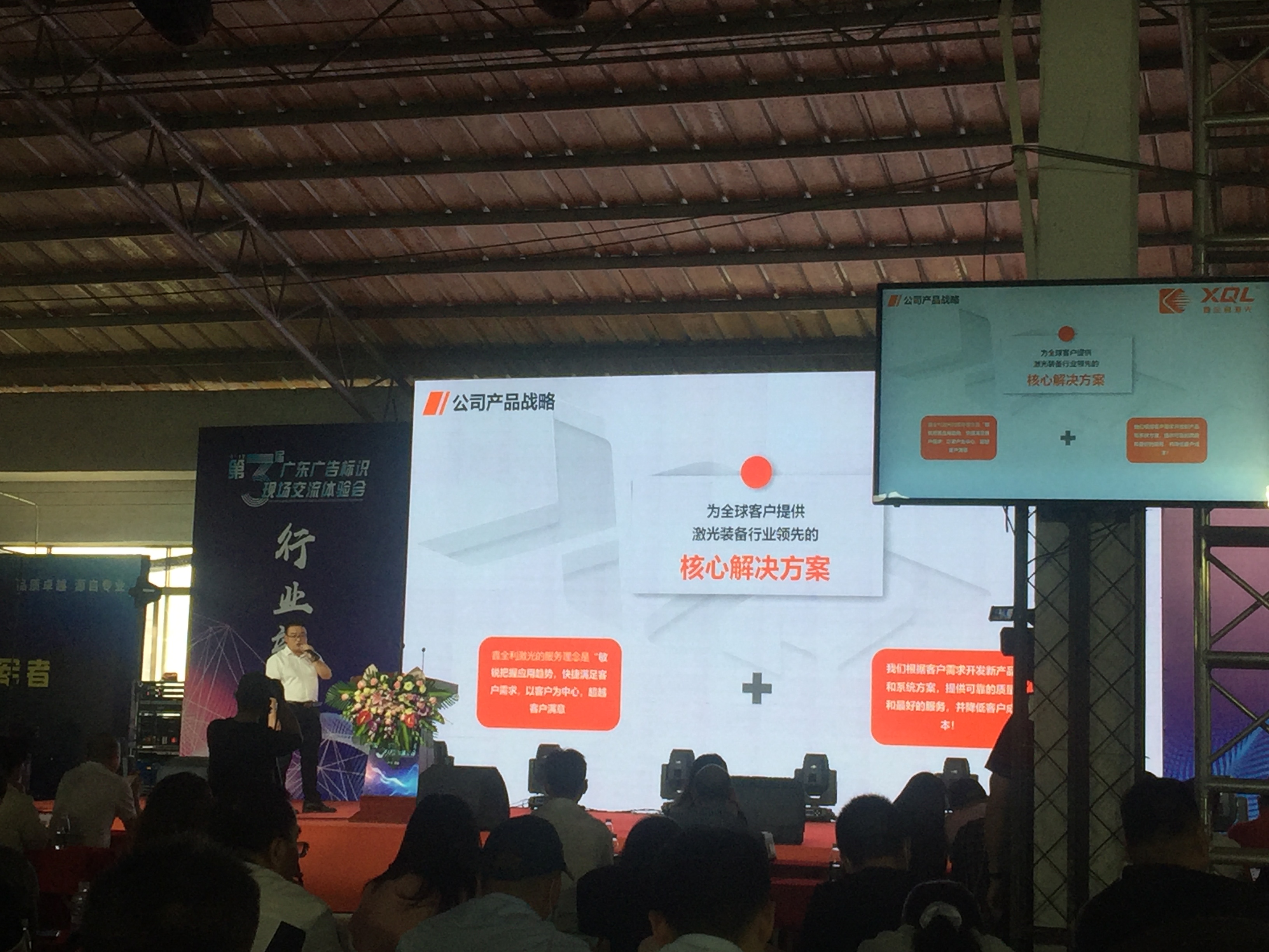 會場PPT宣講,由我司市場部總監(jiān)李松先生為大家?guī)硪粓鲫P(guān)于“廣告標(biāo)識行業(yè)一站式配套服務(wù)”宣講,共探激光裝備在廣告標(biāo)識行業(yè)的應(yīng)用。