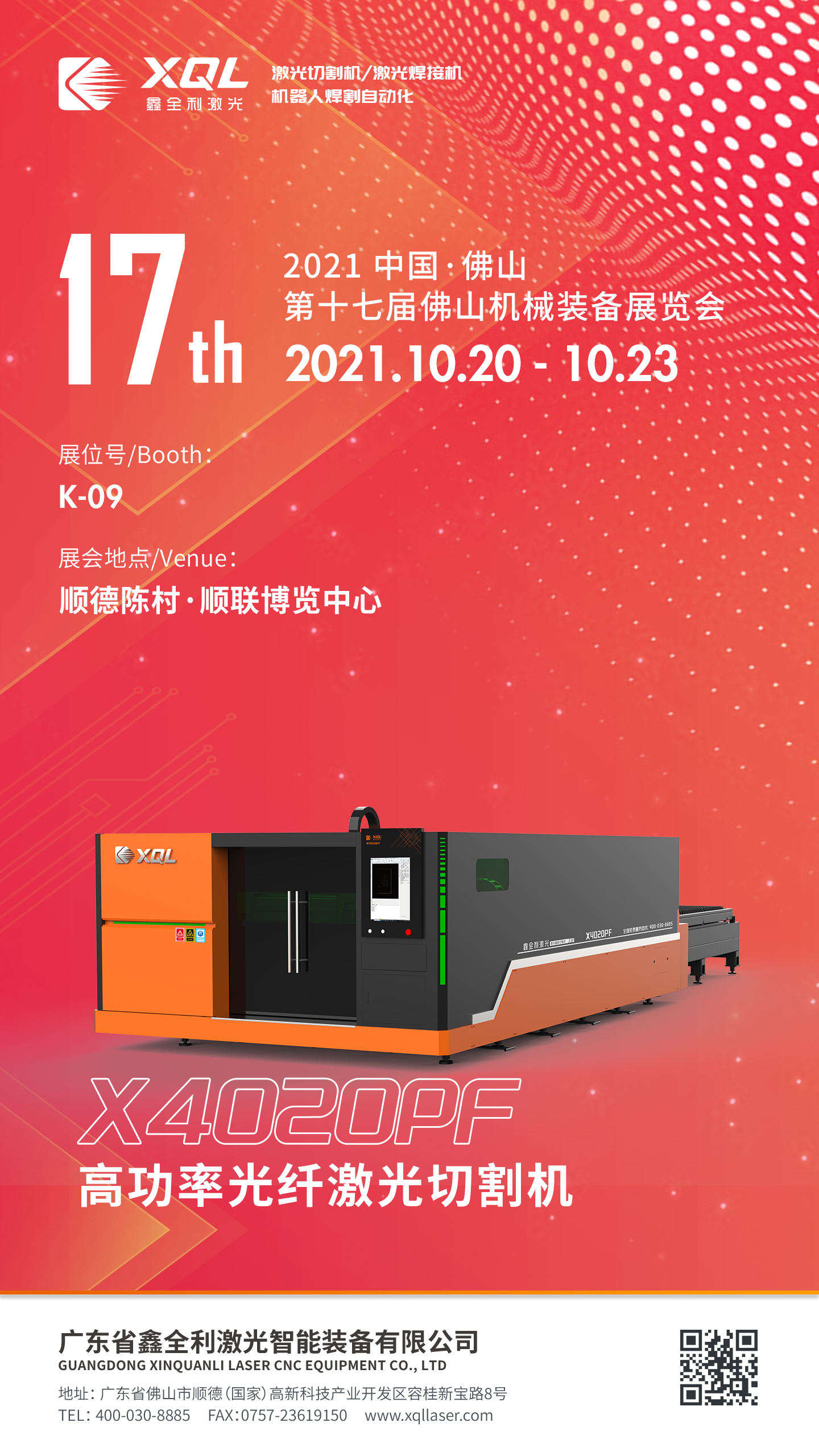 10月20-23日,鑫全利激光亮相佛山順聯(lián)機(jī)械展K09展位!