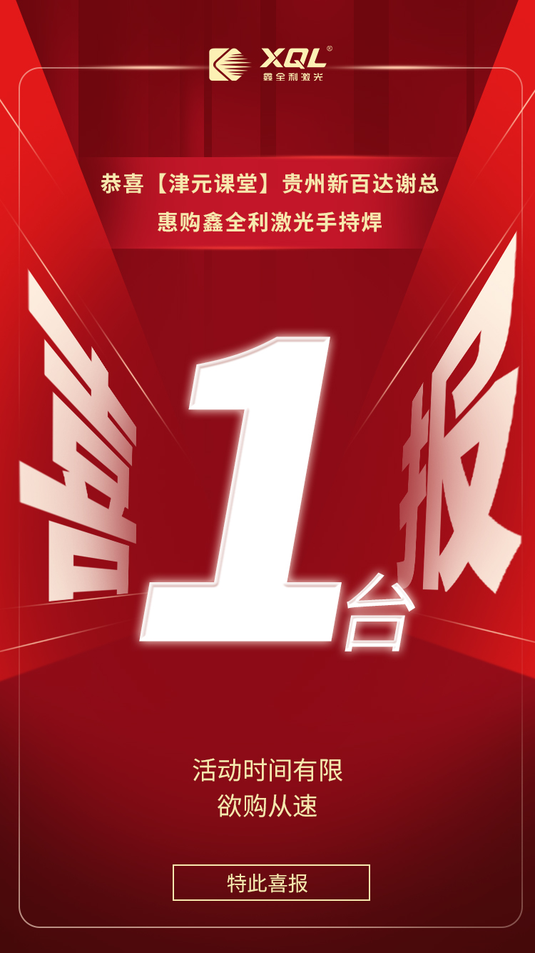 恭喜【津元課堂】貴州新百達(dá)謝總惠購鑫全利激光手持焊一臺;