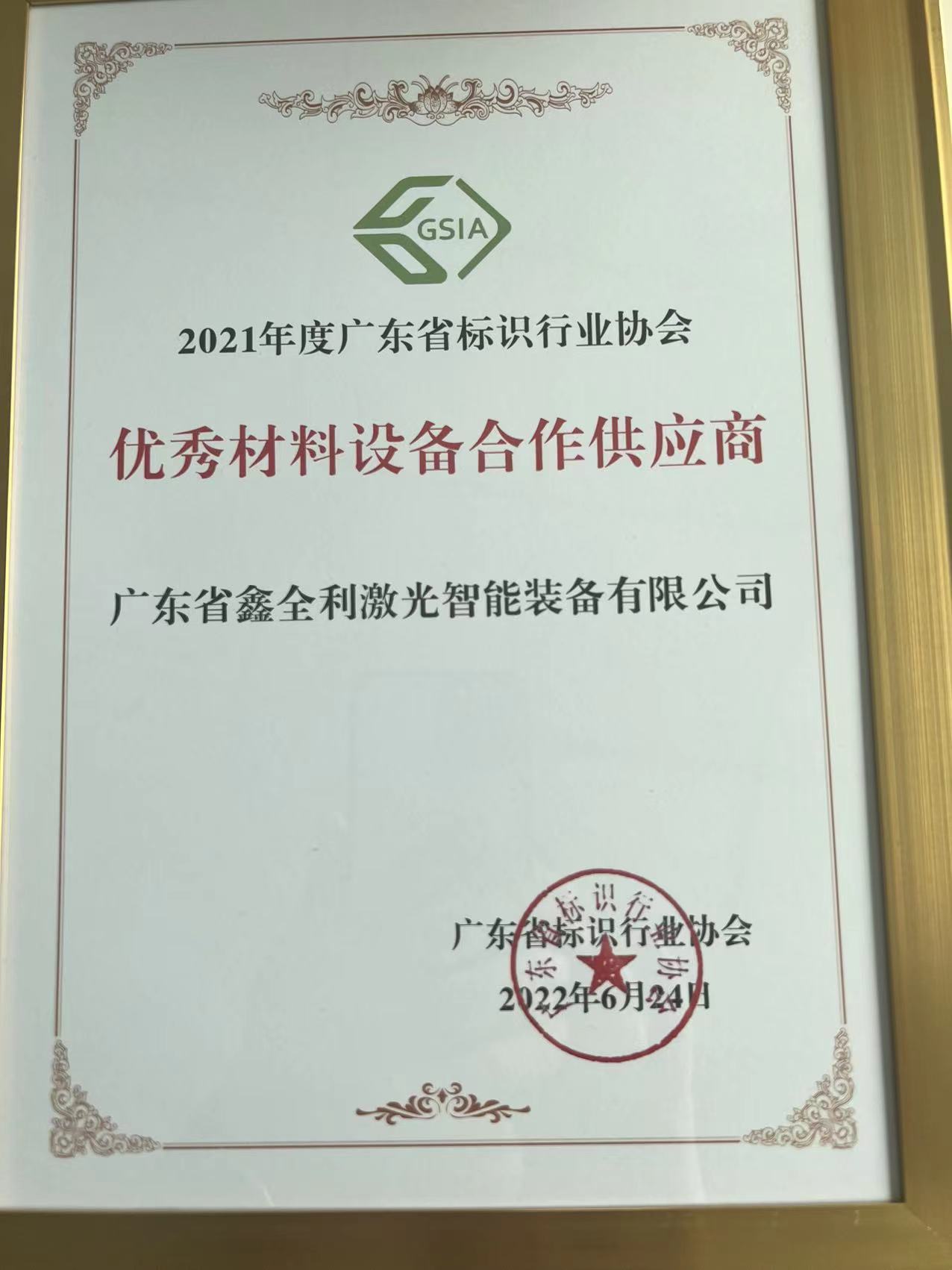 鑫全利激光榮獲“優(yōu)秀合作供應(yīng)商”獎(jiǎng)牌