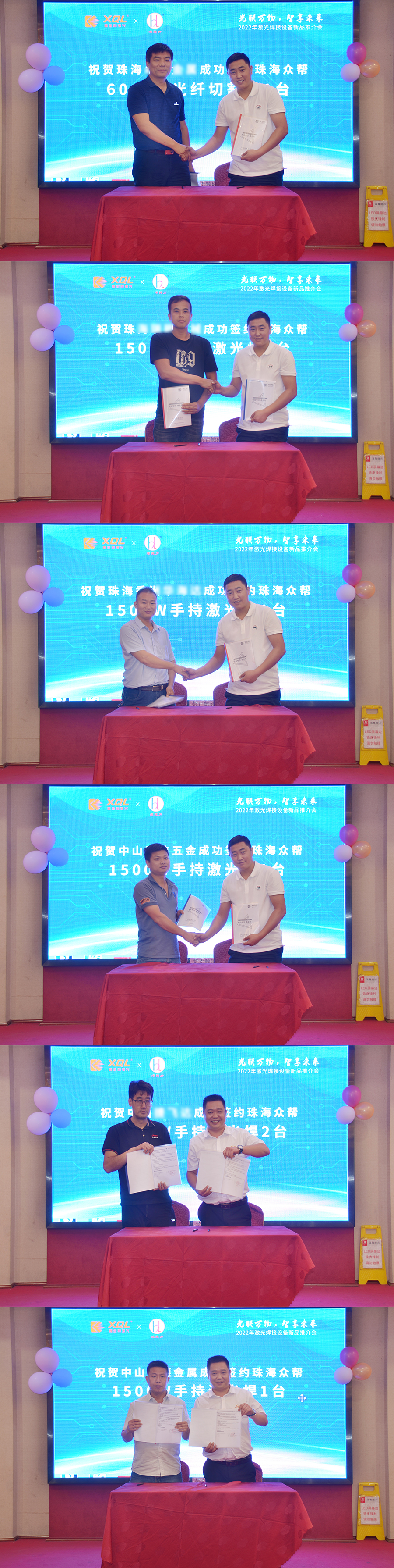 鑫全利激光品牌創(chuàng)始人及董事長(zhǎng)王總、焊接事業(yè)部李總,珠海眾幫董事長(zhǎng)柳總、總經(jīng)理汪總,珠海焊接協(xié)會(huì)領(lǐng)導(dǎo),船舶制造協(xié)會(huì)領(lǐng)導(dǎo),工業(yè)制造協(xié)會(huì)領(lǐng)導(dǎo)、“焊工老張”焊接培訓(xùn)界達(dá)人,“廣告人阿齊”廣告達(dá)人以及公司的合作伙伴、新老客戶出席了此次推介會(huì),共吸引了200+位客戶朋友參與,簽訂年銷售300臺(tái)手持焊框架,當(dāng)天就現(xiàn)場(chǎng)成功簽約數(shù)10臺(tái)激光設(shè)備超200多萬銷售額的訂單,贏得了與會(huì)人員的一致肯定和好評(píng)!