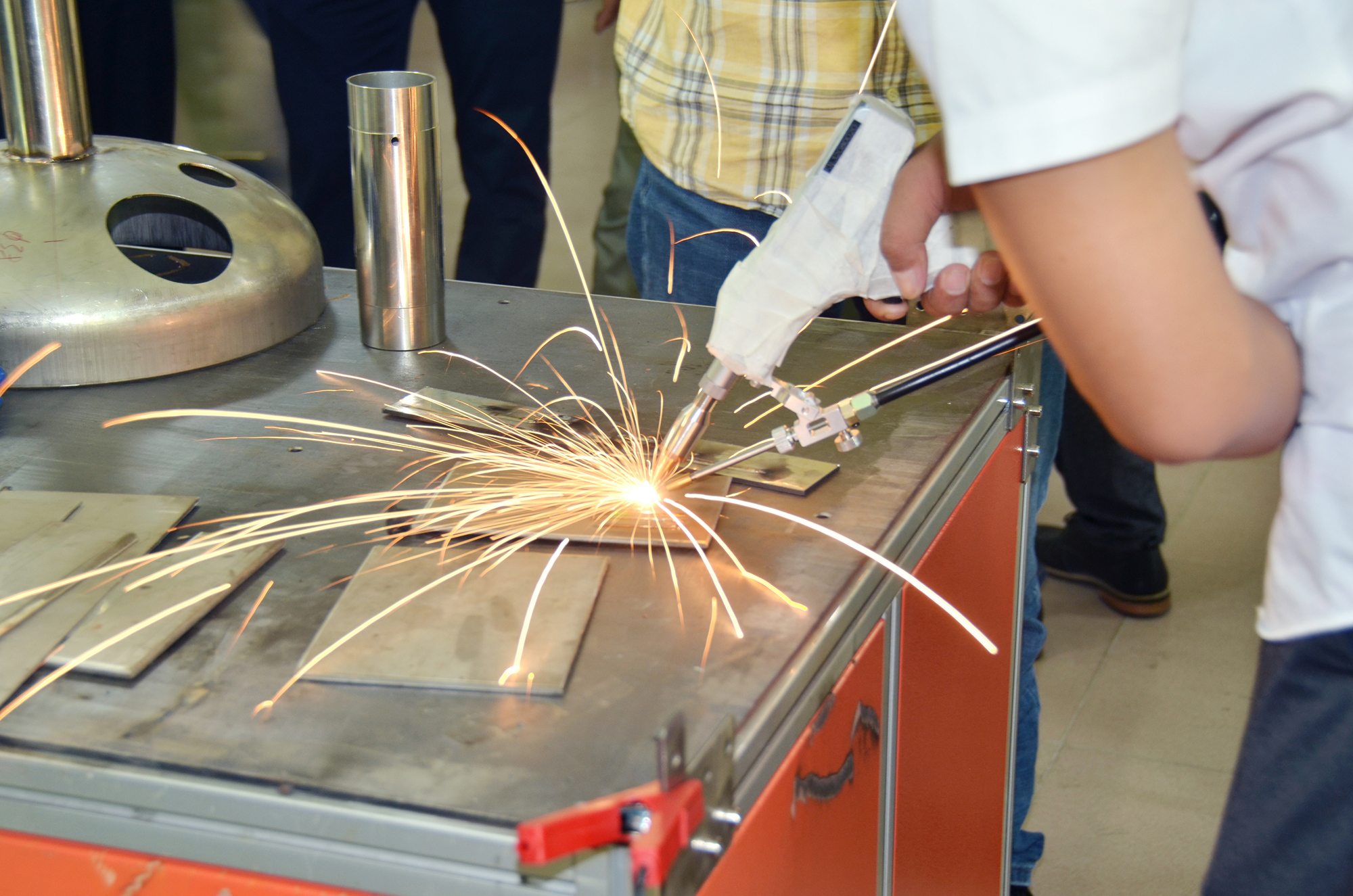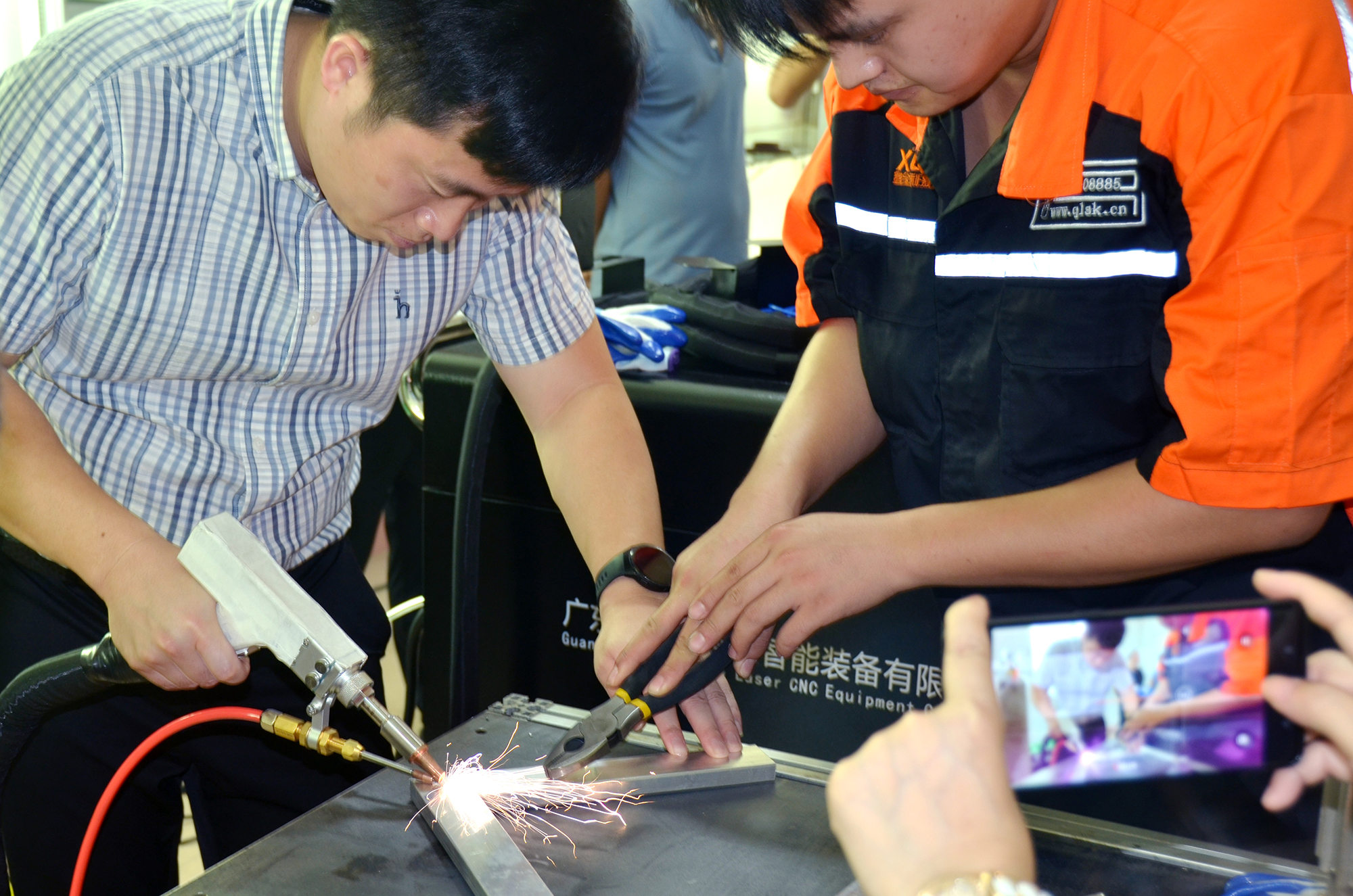 多位來賓現(xiàn)場(chǎng)操作焊接設(shè)備