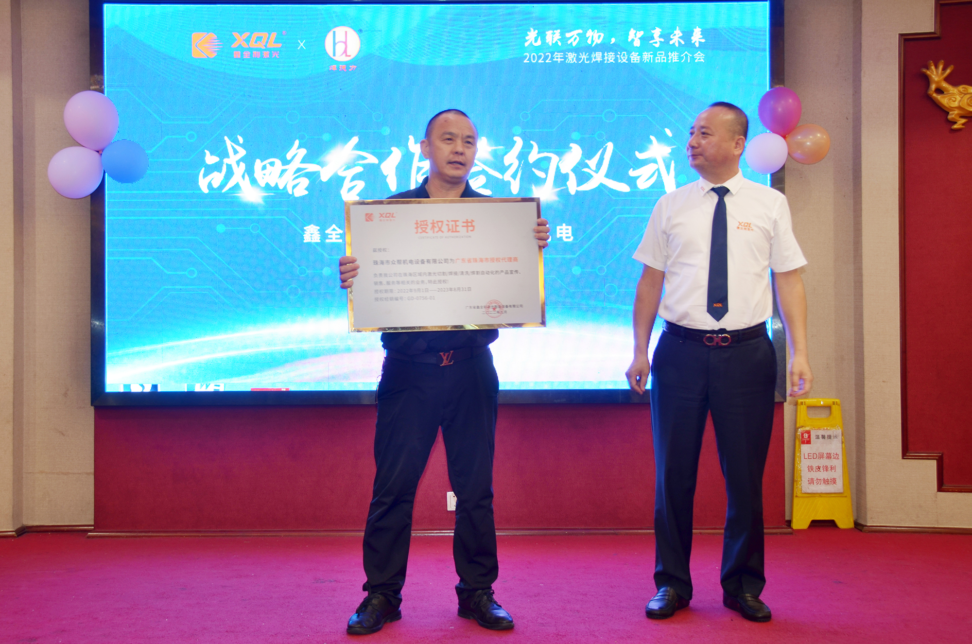 廣東省鑫全利激光智能裝備有限公司向珠海市眾幫機(jī)電設(shè)備有限公司頒發(fā)授權(quán)書,雙方正式簽訂《代理協(xié)議書》,并承諾在合作期內(nèi)繼續(xù)加強(qiáng)激光設(shè)備的銷售與服務(wù)合作,共同構(gòu)建長(zhǎng)期、穩(wěn)定的戰(zhàn)略合作關(guān)系,進(jìn)一步開展全方位、多層次、寬領(lǐng)域的深度合作,努力實(shí)現(xiàn)共創(chuàng)共贏、協(xié)同發(fā)展。